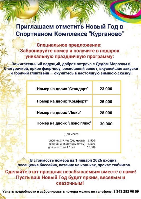 Приглашаем отметить Новый Год в Спортивном Комплексе "Курганово"!